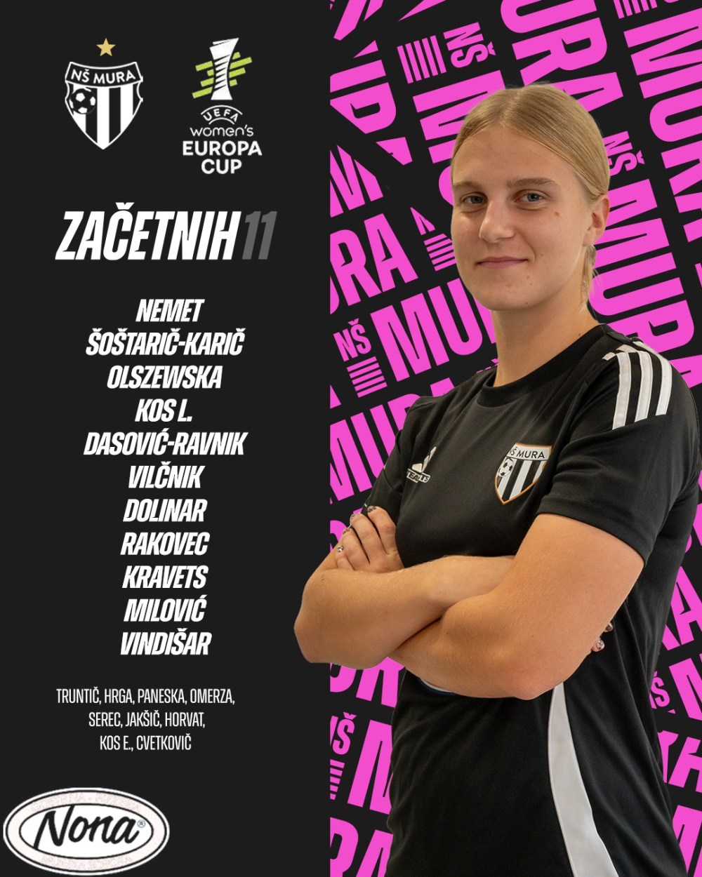 Za nogometašicami Mure None je prva tekma osmine finala Evropskega pokala proti danski ekipi Nordsjælland. Črno-bele so tekmo v gosteh izgubile z 1:0 in pred povratno tekmo, ki bo 19. novembra, ohranjajo upanje na napredovanje. Edini zadetek je padel v prvem polčasu.