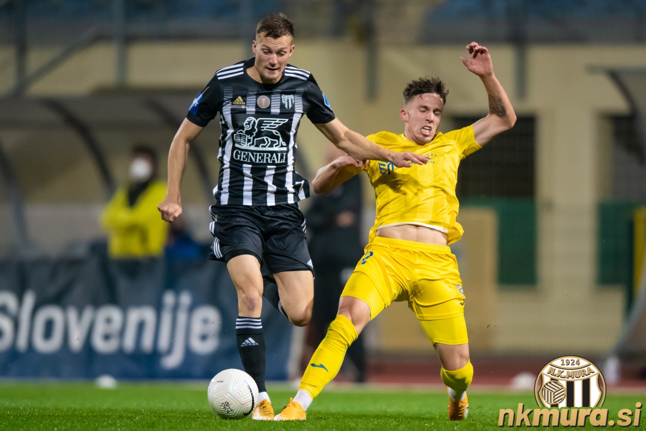 Tudi pri Muri so imeli nekaj težav s poškodbami, a ne v takšnem obsegu, kljub temu pa so črno-beli v prvih desetih minutah pokazali več in v deveti minuti je Amadej Maroša s strelom z glavo iz bližine žogo poslal čez gol. Maroša je sicer že v 20. minuti moral iz igre, saj so Sobočani takrat že igrali z igralcem manj.