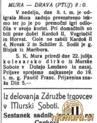 Pri Muri, ki je bila za ptujčane premočna, so se najbolj izkazali Kardoš II, Vogrinčič in Horvat. Zadetke so dosegli Kardoš II (4), Novak (2) in Schiller (2).