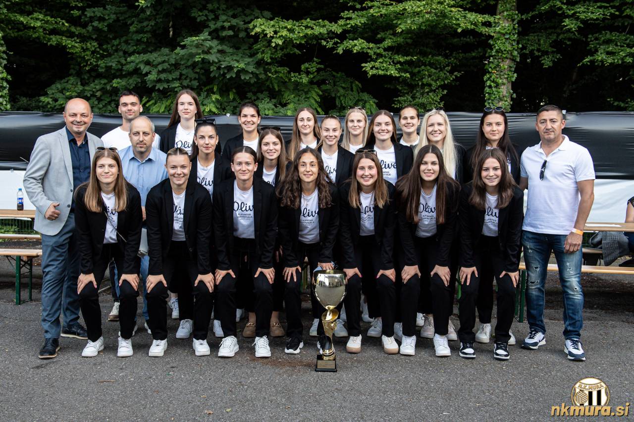 Murapice na odru s pokalom za naslov državnih prvakinj. Avtorske pravice: nkmura.si Foto: Aleš Cipot/fotolens.si
