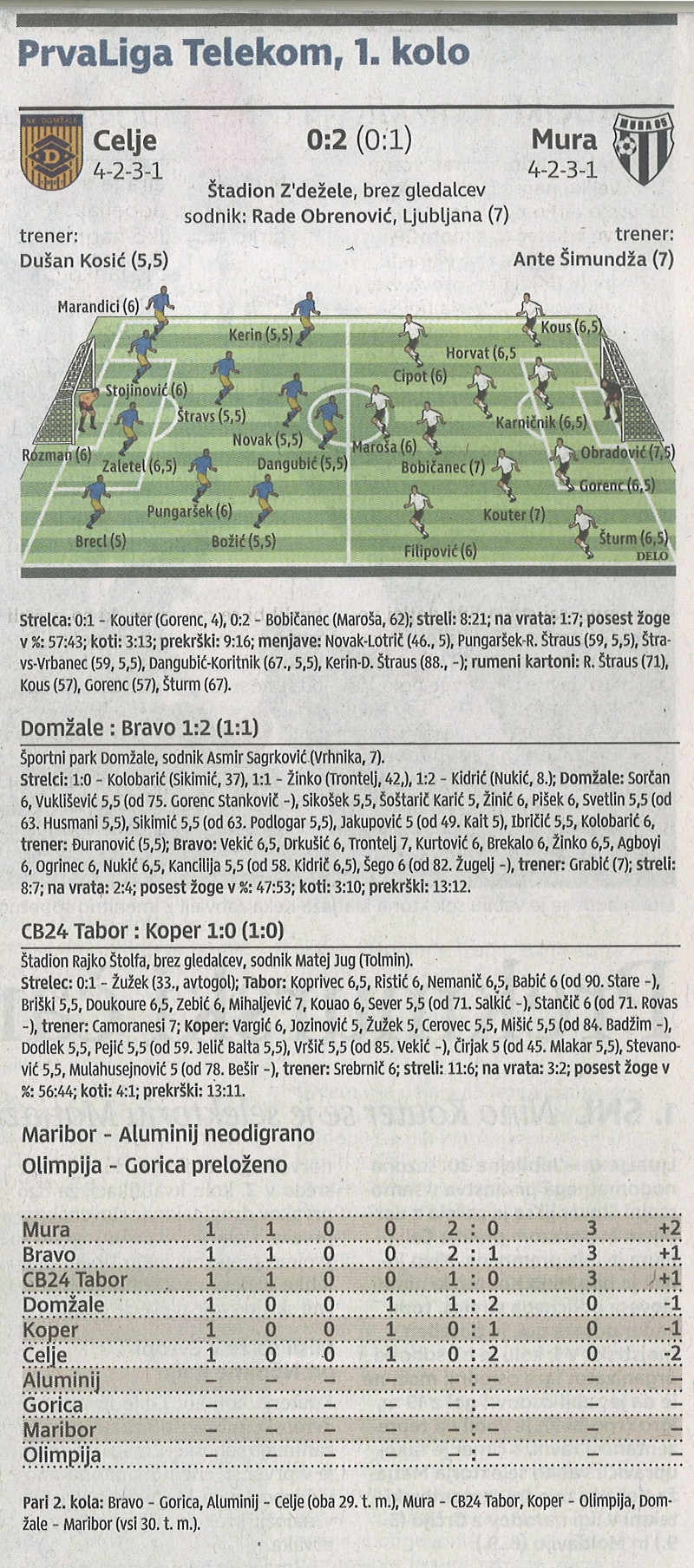 * Mura: Obradović, Cipot (od 67. Kosi), Bobičanec, Kouter, Kous, Maroša (od 86. Kozar), Horvat, Karničnik, Šturm, Gorenc, Filipović (od 74. Žižek).