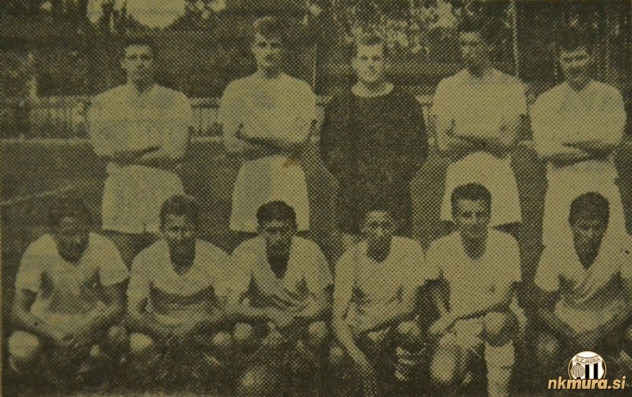 Začetna enajsterica Mure na tekmi Mura : Rudar Trbovlje (4. junij 1967). Stojijo od leve: Puškarič, Kerčmar, Pihler, Kukanja, V. Horvat. Čepijo od leve: Miloševič, Sečko, Tkalčec, J. Martinuzzi, Maučec in Koblencer. Avtorske pravice: nkmura.si Foto: Vestnik, 22. junij 1967
