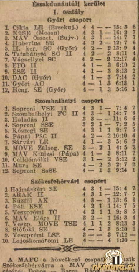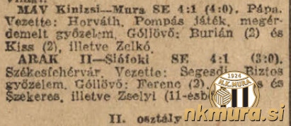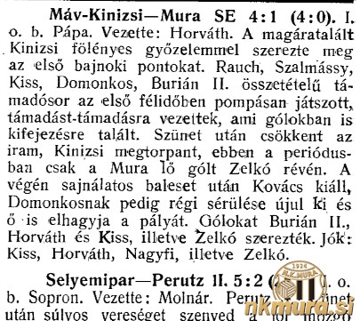 Pápai MÁV je s to zmago na svoj račun spravil prve prvenstvene točke v tej sezoni. Domačini so visoko vodili že v prvem polčasu, potem ko so zadeli Gólokat, Burián II., Horyáth in Kiss. Za Muro je zadel Feri Zelko.