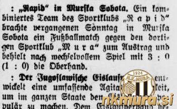 V nedeljo, 22. novembra 1936, je Mura odigrala zadnjo tekmo v letu 1936. V Murski Soboti je v prijateljski tekmi gostila Mariborski Rapid, ki v tej sezoni igra v I. razredu Mariborske skupine.