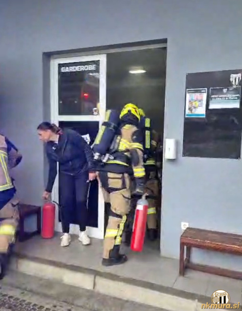 Gasilci vstopajo v garderobe pod glavno tribuno. Avtorske pravice: nkmura.si Foto: arhiv NK Mura skozi čas