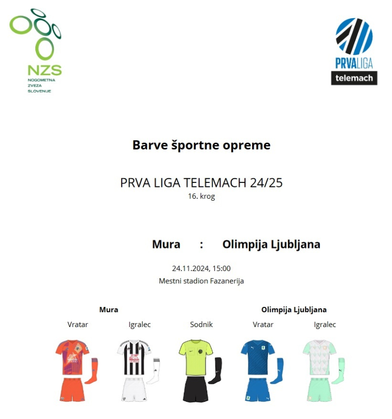 NZS je pred tekmo določila barvne kombinacije. Avtorske pravice: nkmura.si Foto: NZS