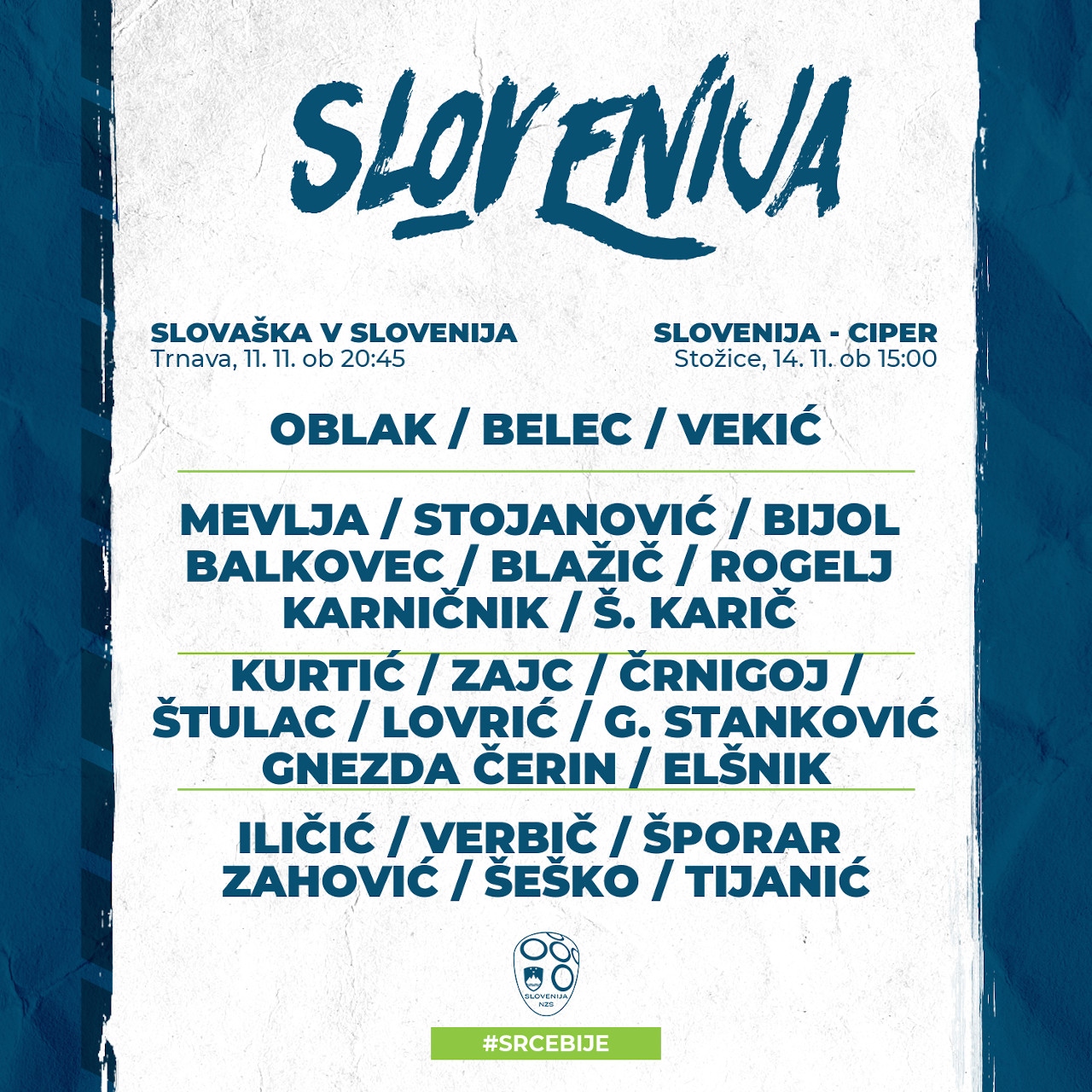 Slovenski selektor Matjaž Kek je na današnji novinarski konferenci, ki je potekala v Pivnici Union v Ljubljani, predstavil seznam reprezentantov za zadnji dve tekmi v kvalifikacijah za svetovno prvenstvo 2022. Slovenija se bo 11. novembra ob 20.45 v Trnavi pomerila s Slovaško, 14. novembra ob 15.00 pa bo sledil še epilog v Stožicah proti Cipru.