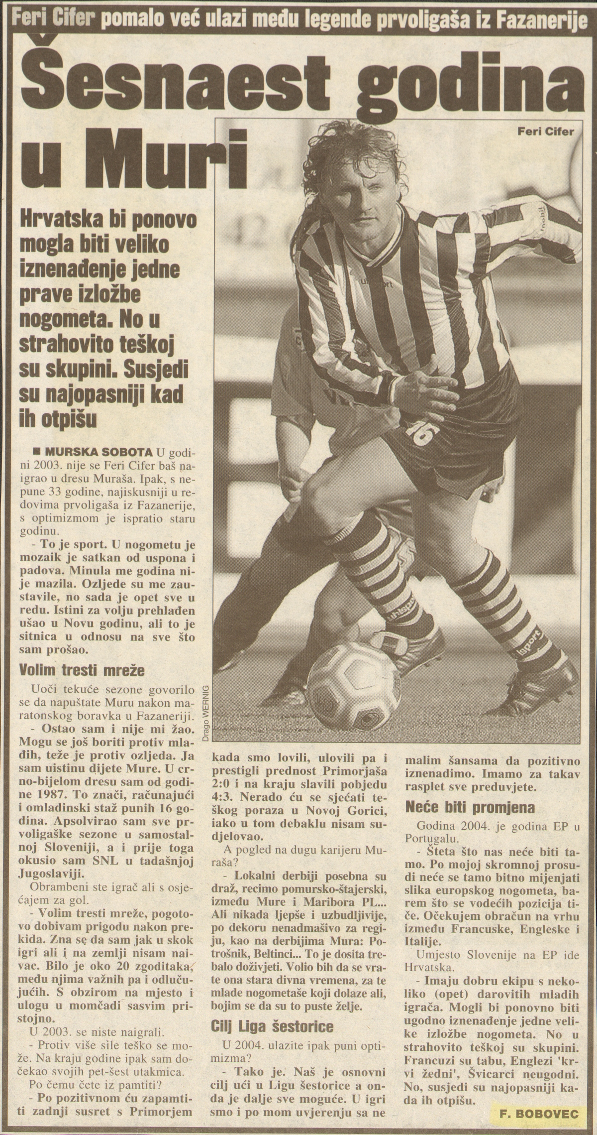 Franc Cifer velja za eno izmed legend Mure. V začetku leta 2004 mineva šestnajst let njegove kariere pri Muri. Preizkusil je dve slovenski ligi - tisto iz časa Jugoslavije in iz časa samostojne Slovenije. Ob tej priložnosti je Franc Bobovec z njim opravil intervju, ki je bil objavljen v Sportskih Novostih.