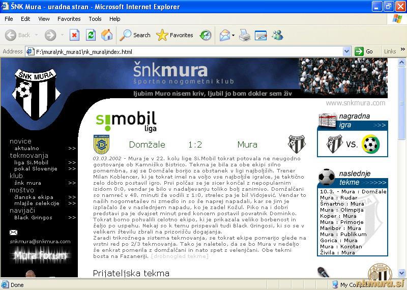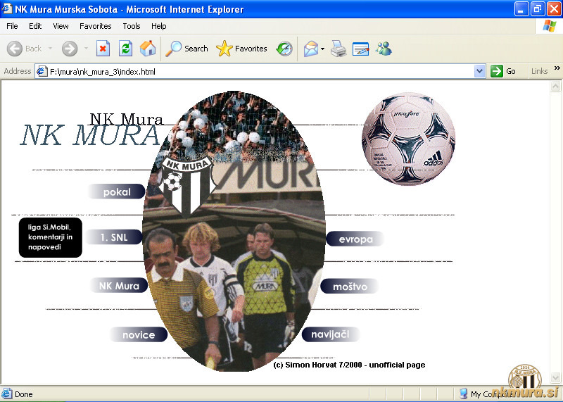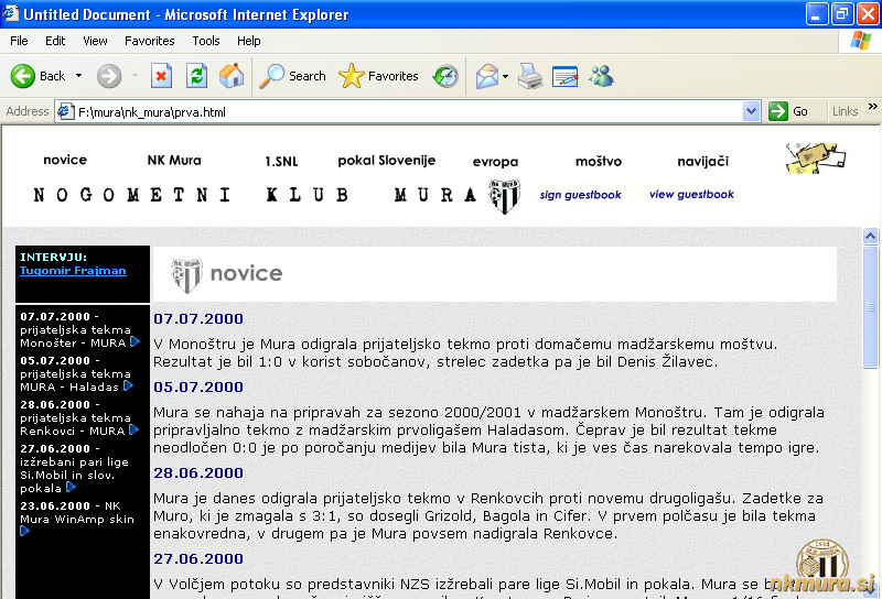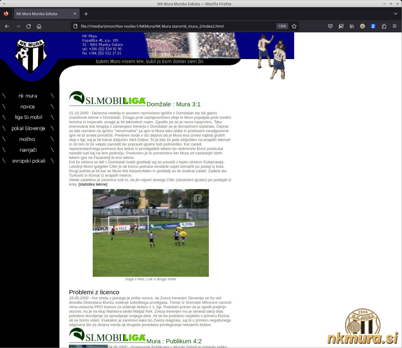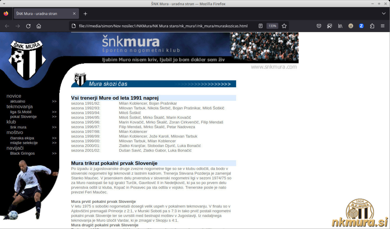 Izgled prve neuradne spletne strani NK Mura iz leta 2000. Avtorske pravice: nkmura.si Foto: Simon Horvat