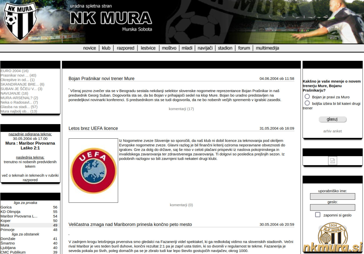 Oktobra 2000 je klub dobil prvo uradno spletno stran. V primerjavi z neuradno stranjo je bil spremenjen izgled strani. Avtorske pravice: nkmura.si Foto: Simon Horvat