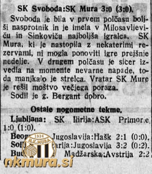 V zadnji jesenski prvenstveni tekmi so se nogometaši Mure v Mariboru pomerili s Svobodo in izgubili s 3:0 (3:0). Mura je igrala z nekaterimi rezervnimi igralci. V drugem polčasu je bila Mura na trenutke nevarna, vendar ni imela razpoloženega igralca, ki bi znal žogo potisniti v mrežo.