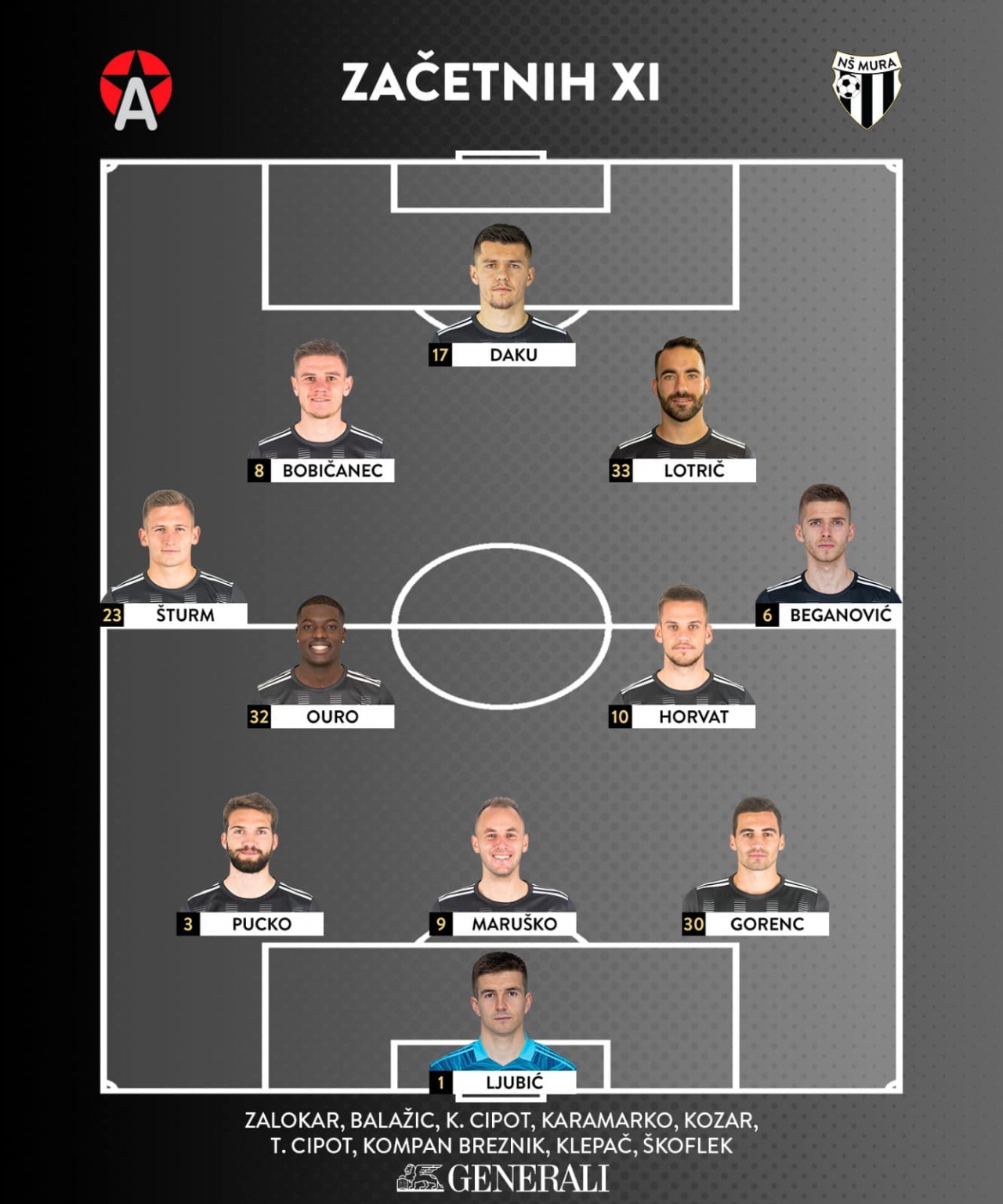 Mura: Ljubić, Pucko, Maruško, Gorenc, Šturm, Ouro, Horvat, Beganović, Bobičanec (od 78. Kozar), Lotrič (od 66. Škoflek), Daku (od 93. T. Cipot). Trener Domir Čontala.