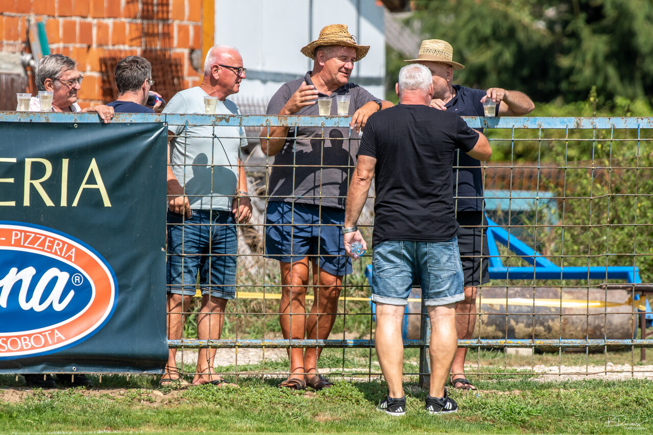 Trener Bojan Jančar (kaže hrbet) v pogovoru z obiskovalci tekem. Avtorske pravice: nkmura.si Foto: Boštjan Rous