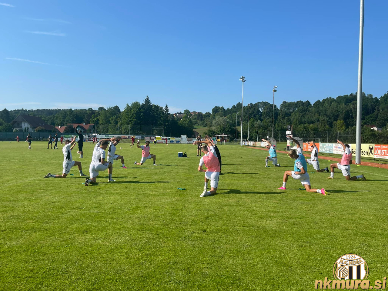Nogometaši Mure na ogrevanju pred pred tekmo z GAK-om. Avtorske pravice: nkmura.si Foto: Smiljan Kuhar