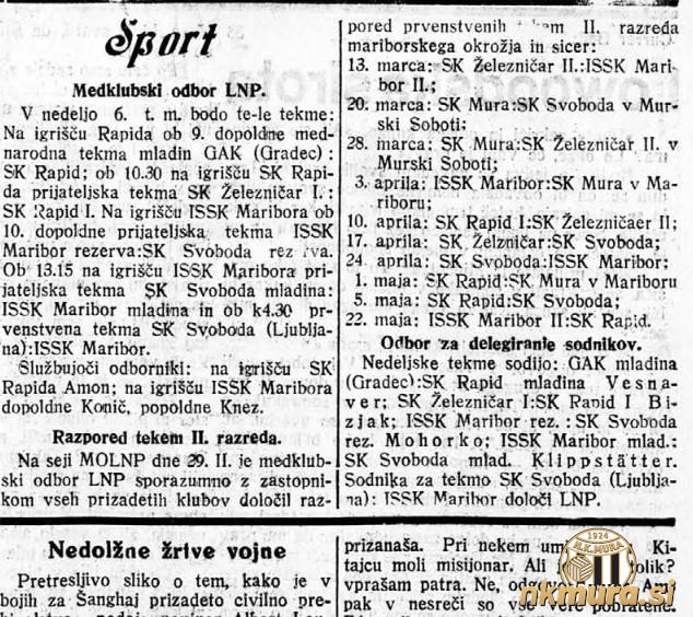 3. aprila 1932 - I.SSK Maribor rezerve : Mura
